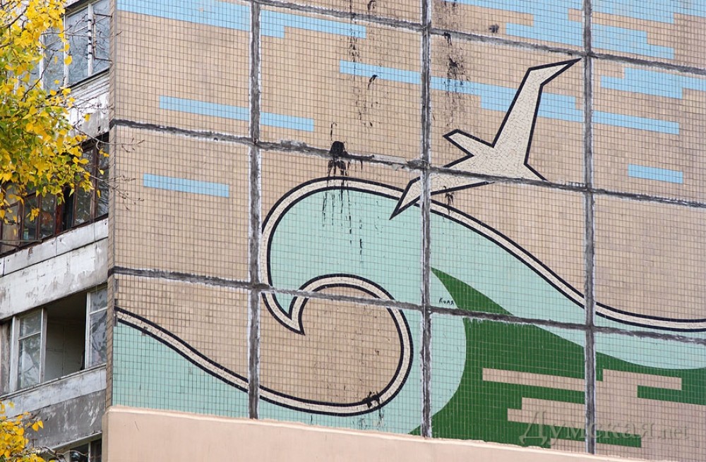 Мозаика на тему самого зеленого в мире Черного моря украшает высотку на Варненской.