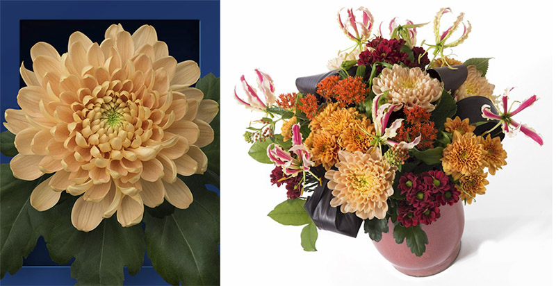 Эта хризантема отлично подойдет не только для изумительных осенних композиций, но и украсит любую свадебную церемонию осенних оттенков. В среднем в неделю на голландский аукцион поставляется около 8000 хризантемы «Аленка Лосось».