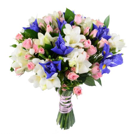 Сочетание сине-фиолетового и мягкого розового или красного нравится очень многим и все больше входит в цветочную моду. В нашем интернет-магазине UFL.ua Вы также найдете нежные сине-красные букеты и заказать их доставку в любую точку мира, в том числе и Техас.