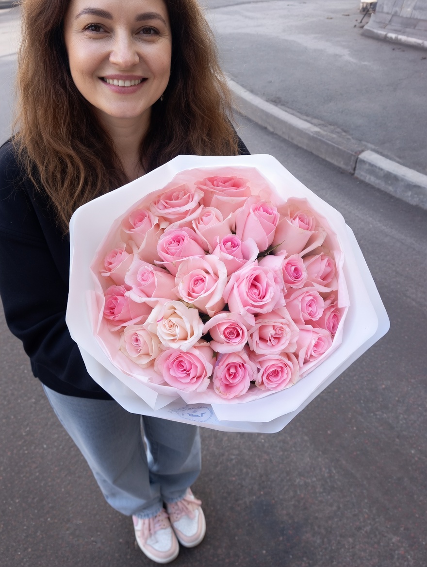 25 розовых роз Кения