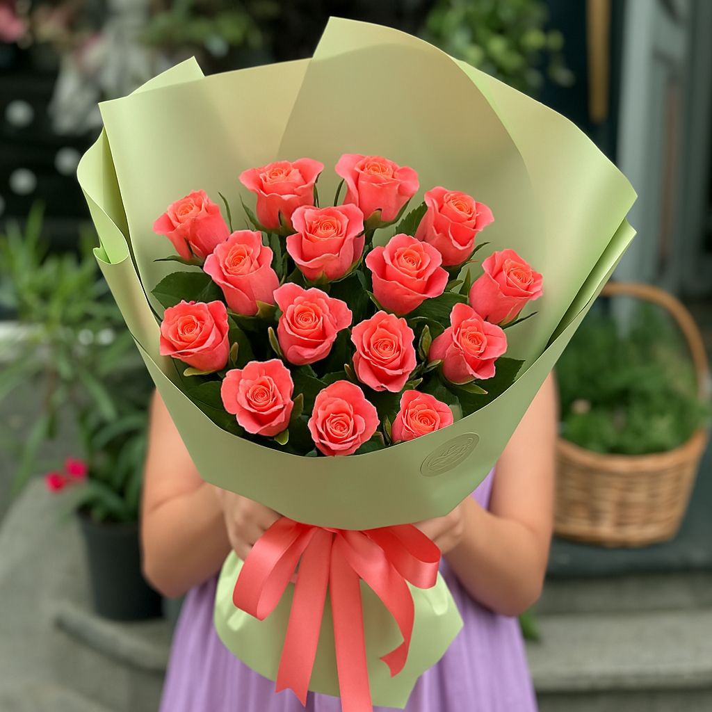 15 коралловых роз