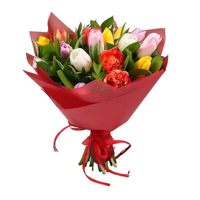 Купить 19 разноцветных тюльпанов с доставкой по Рейкьявику