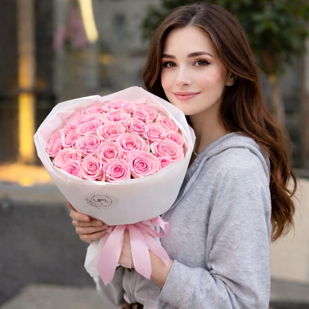 Букет 25 розовых роз Кения в Слиме — это отличный выбор для подарка на любой случай. Такой букет часто выбирают для дня рождения.