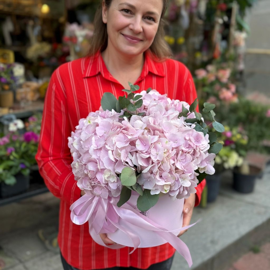 Купить Розовые гортензии в коробке с доставкой по Слиме