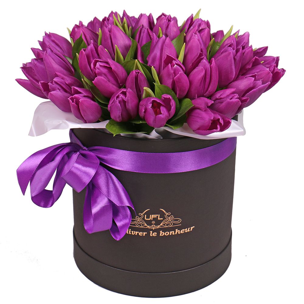 Купить Фиолетовые тюльпаны в коробке с доставкой по Стебнику
