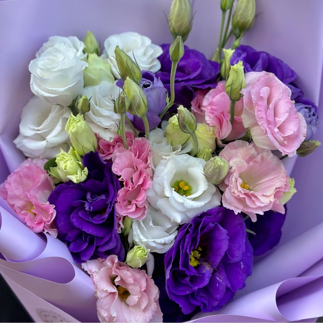• Букет с эустомой Магия радуги Тахарка