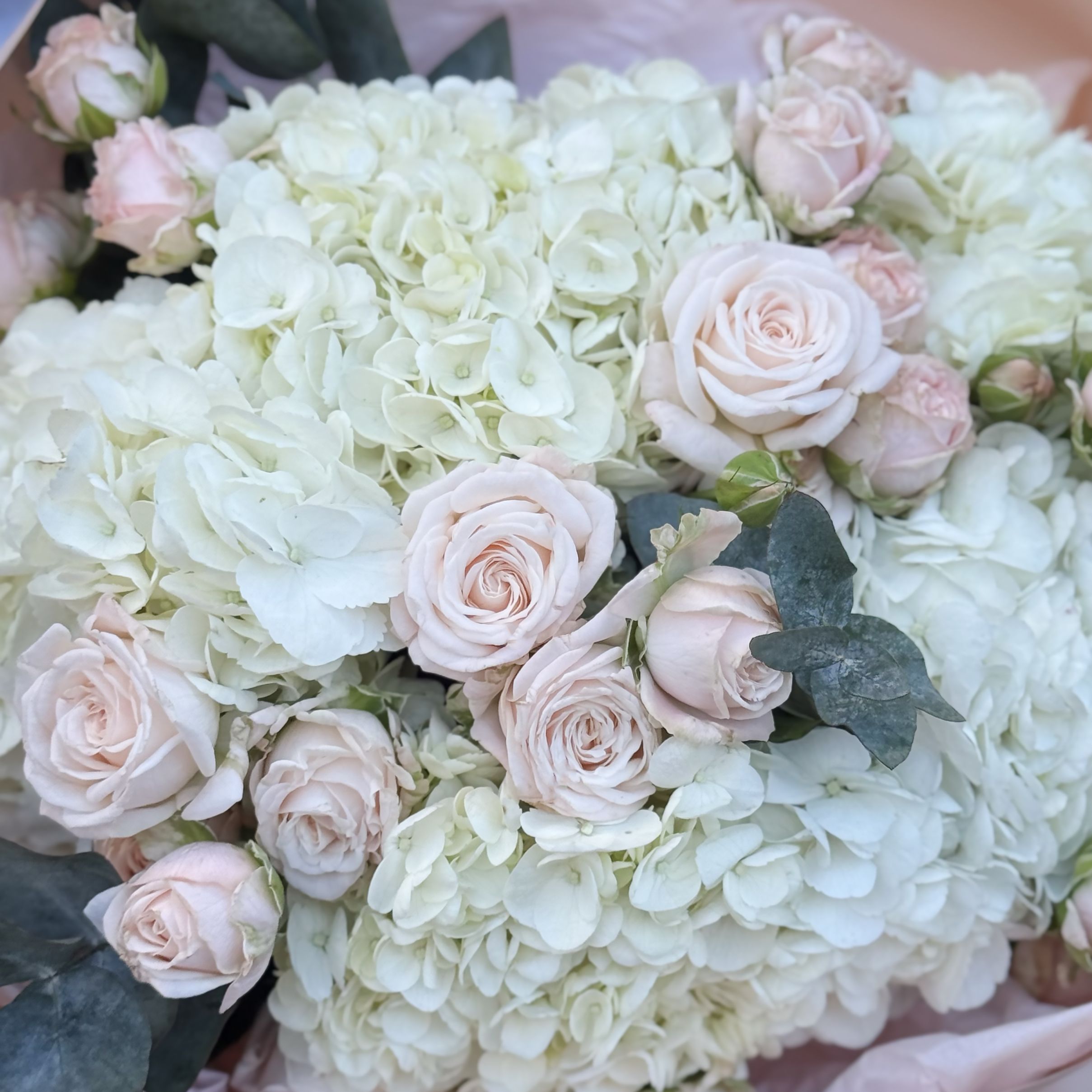 Нежный букет гортензий и роз