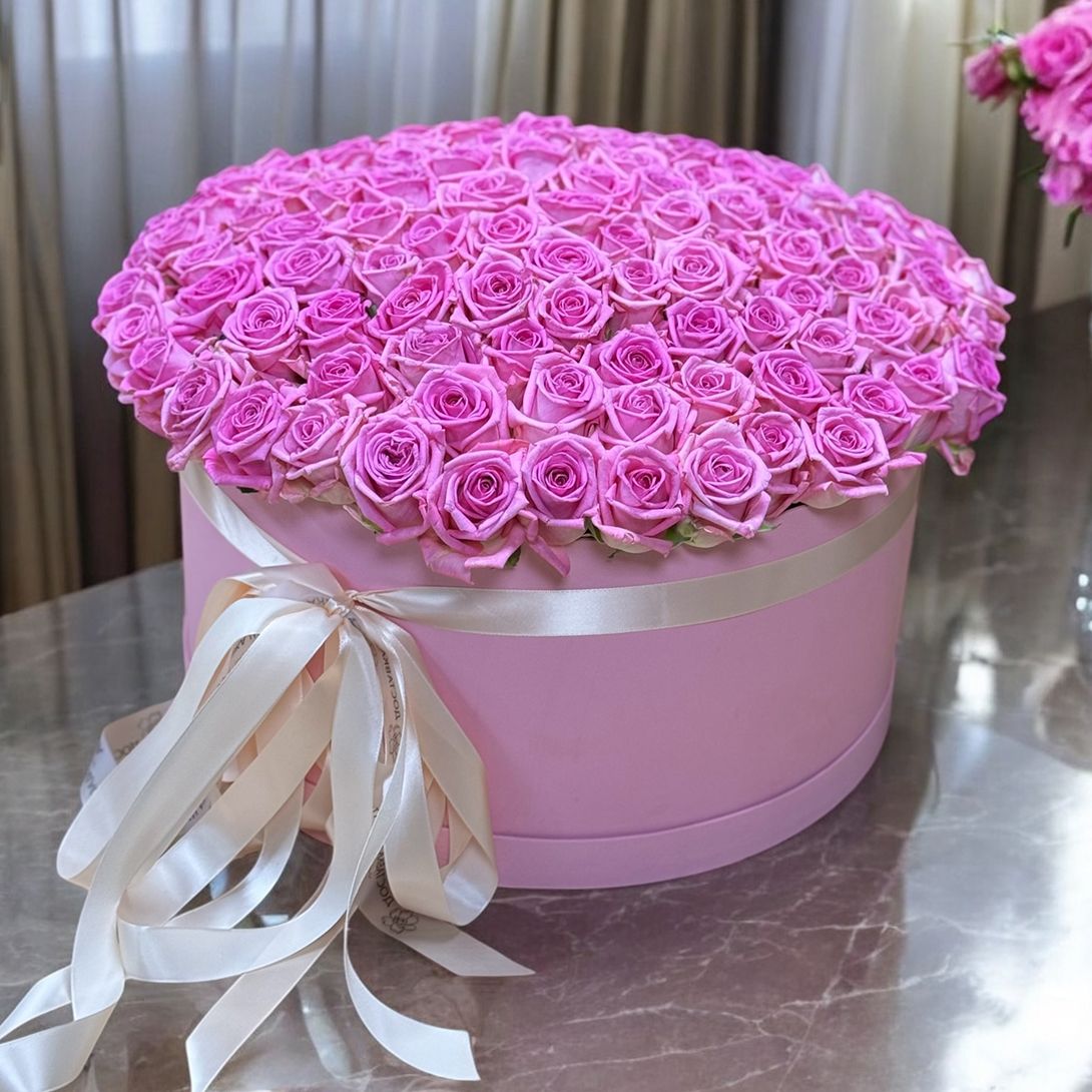 Купить 101 розовая роза в коробке с доставкой по Черновецкой области