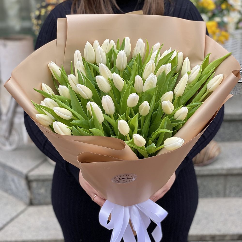 Купити Білі тюльпани 51 шт з доставкою по Чубинському
