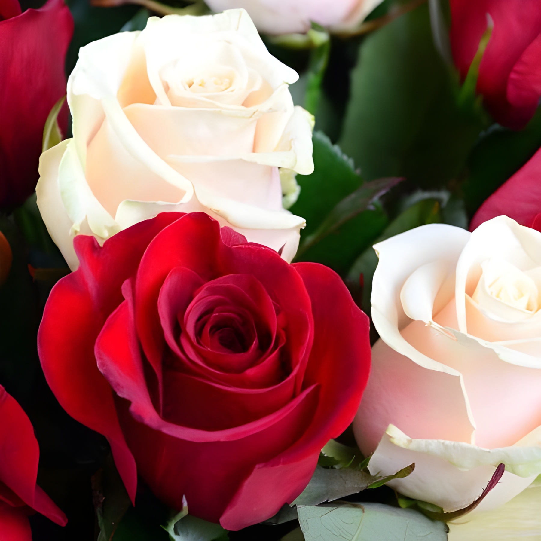 Червоно-кремові троянди (51 шт.)