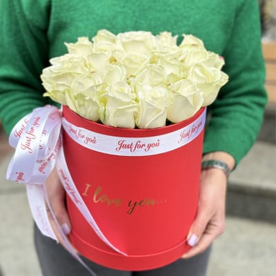 Купити Білі троянди в коробці з доставкою по Кривому Рогу