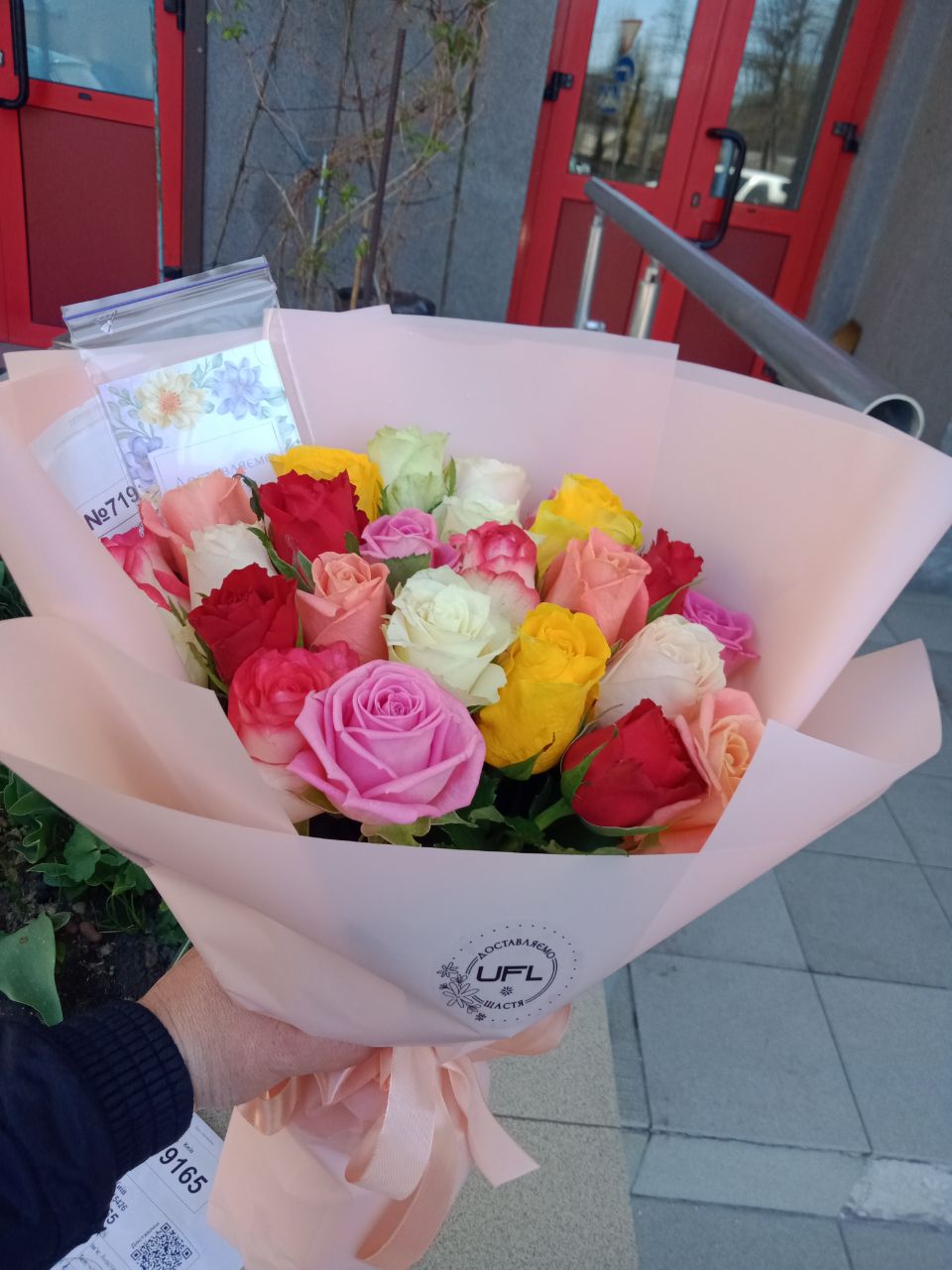 Купити 25 різнокольорових троянд з доставкою в Машивку