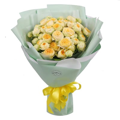 • Букет жовтих півоноподібних троянд 19шт Поханг