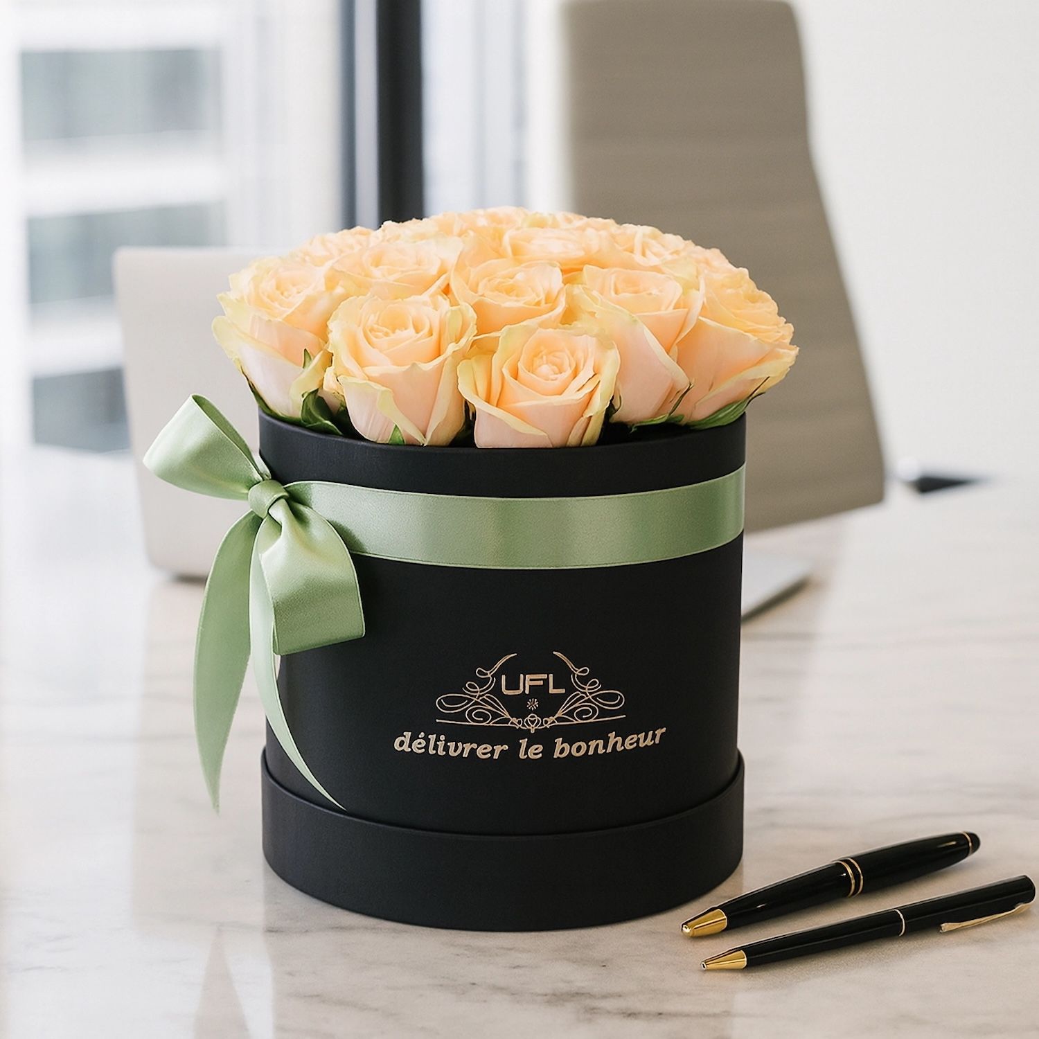 Кремові троянди в коробці 21шт