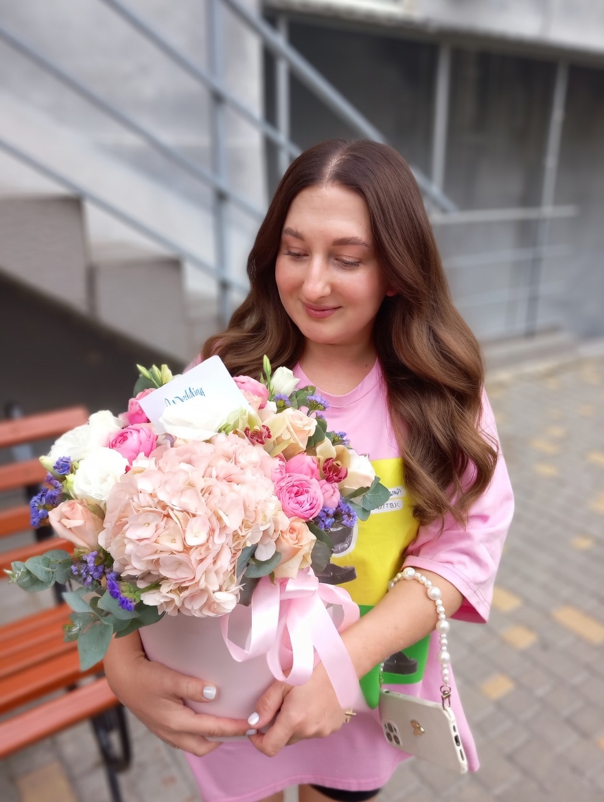 Купити Рожевий квітковий бокс з доставкою по Віккеде