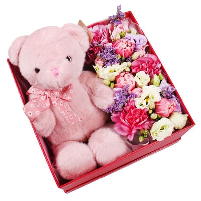 Купити Плюшевий подарунок з квітами з доставкою по Ювілейному (Запорізька обл., Україна)