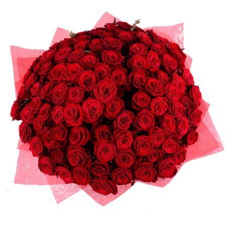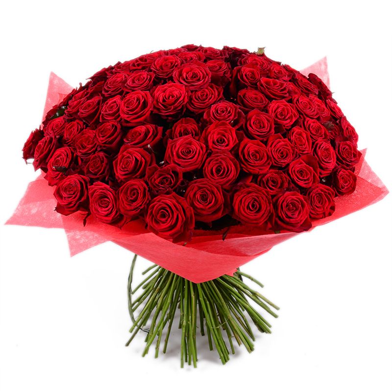 • Состав: Лента на цветы · Упаковать букет цветов (3 шт.) · Роза красная до 50 см (101 шт.)