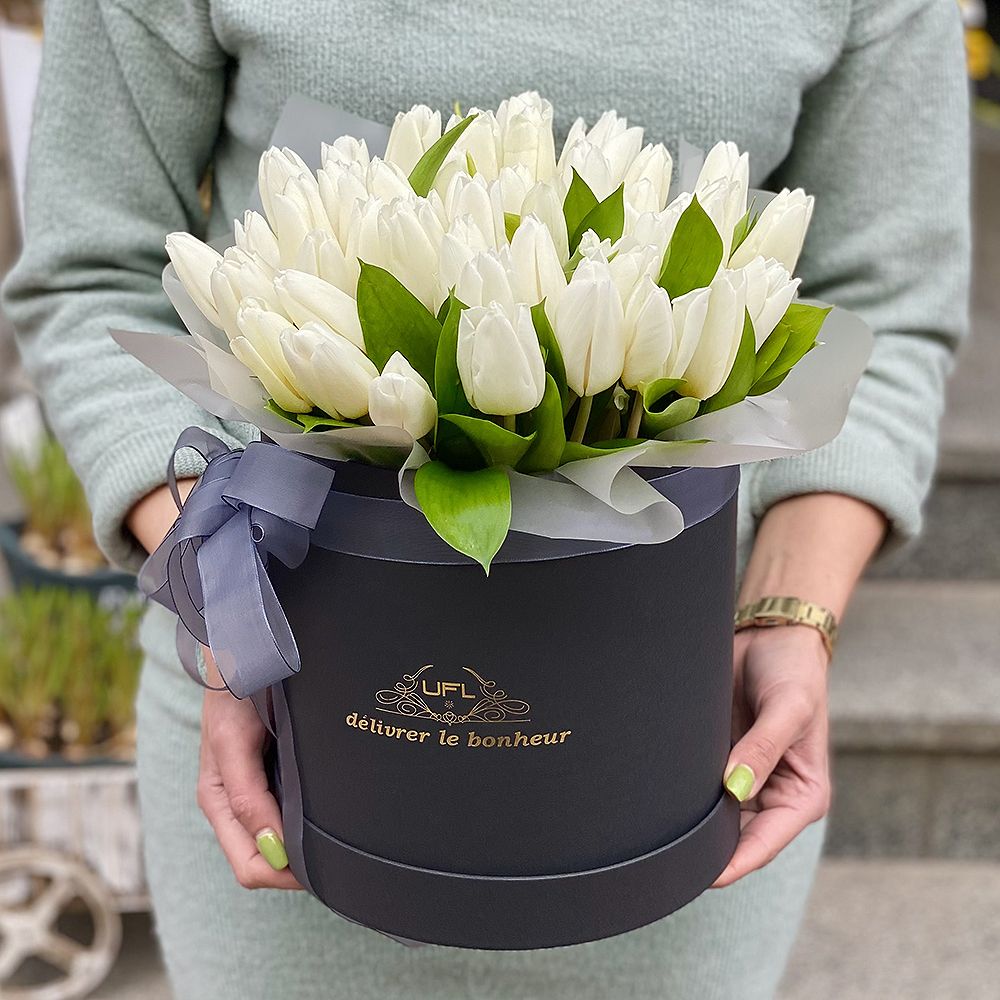 Купить Белые тюльпаны в коробке с доставкой по Вирджиниа Уатер