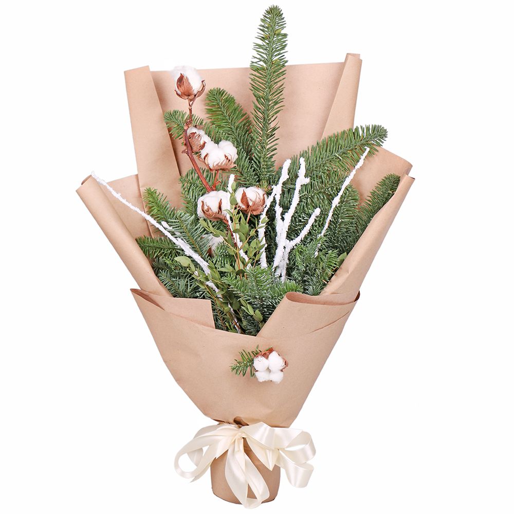 • Состав: Ветка ели (2 шт.) · Хлопок Ветка · упаковка 1 м · Лента на цветы · Эвкалипт · Ветка берк (5 шт.)